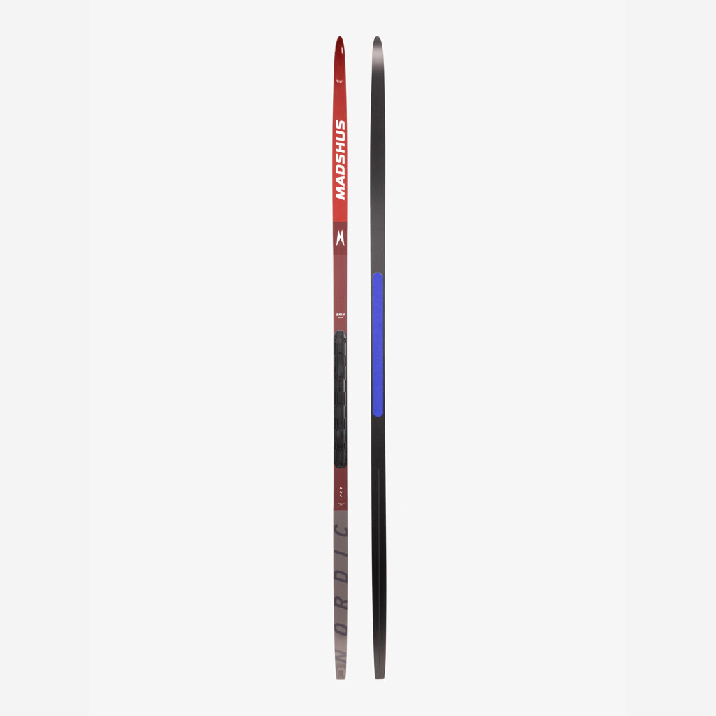 Madshus Nordic Pro Skin jsou ideální běžky pro turistiku a rekreační lyžování, navržené tak, aby poskytovaly maximální stabilitu a spolehlivost. Díky širší konstrukci a vykrojení si na nich užijete pohodlnou jízdu na upravených tratích i v mírném terénu. Klíčovým prvkem je integrovaná stoupací kůže složená ze 70 % mohéru a 30 % nylonu, která ve spojení se Skin Camberem zaručuje vynikající odraz a skluz za všech podmínek, aniž byste se museli starat o mazání. Jádro z Paulownia & Carbon dodává lyžím lehkost a pevnost, zatímco skluznice P-Tex 2000 Electra zajišťuje optimální skluz. Lyže jsou vybaveny technologií Empower pro snadné propojení s tréninkovými aplikacemi a sledování výkonu.