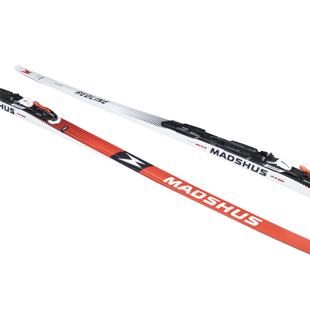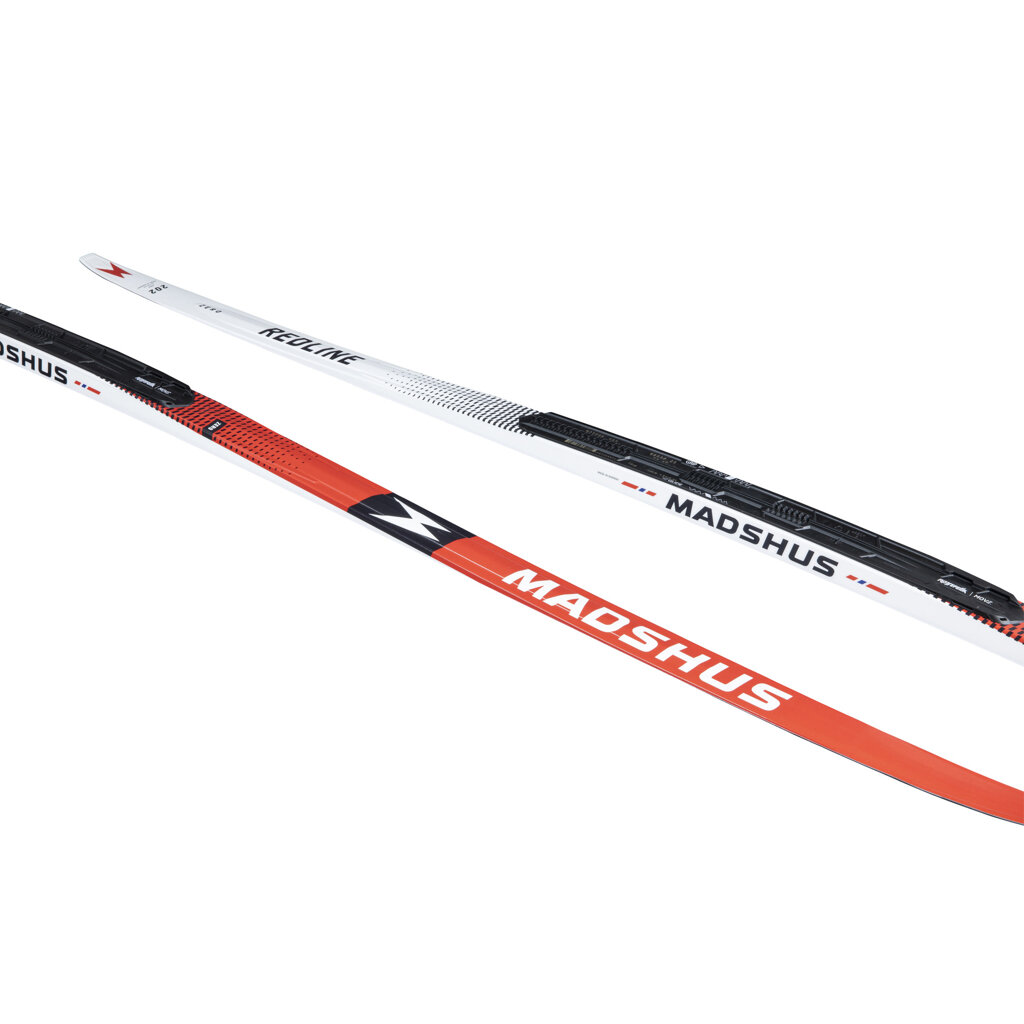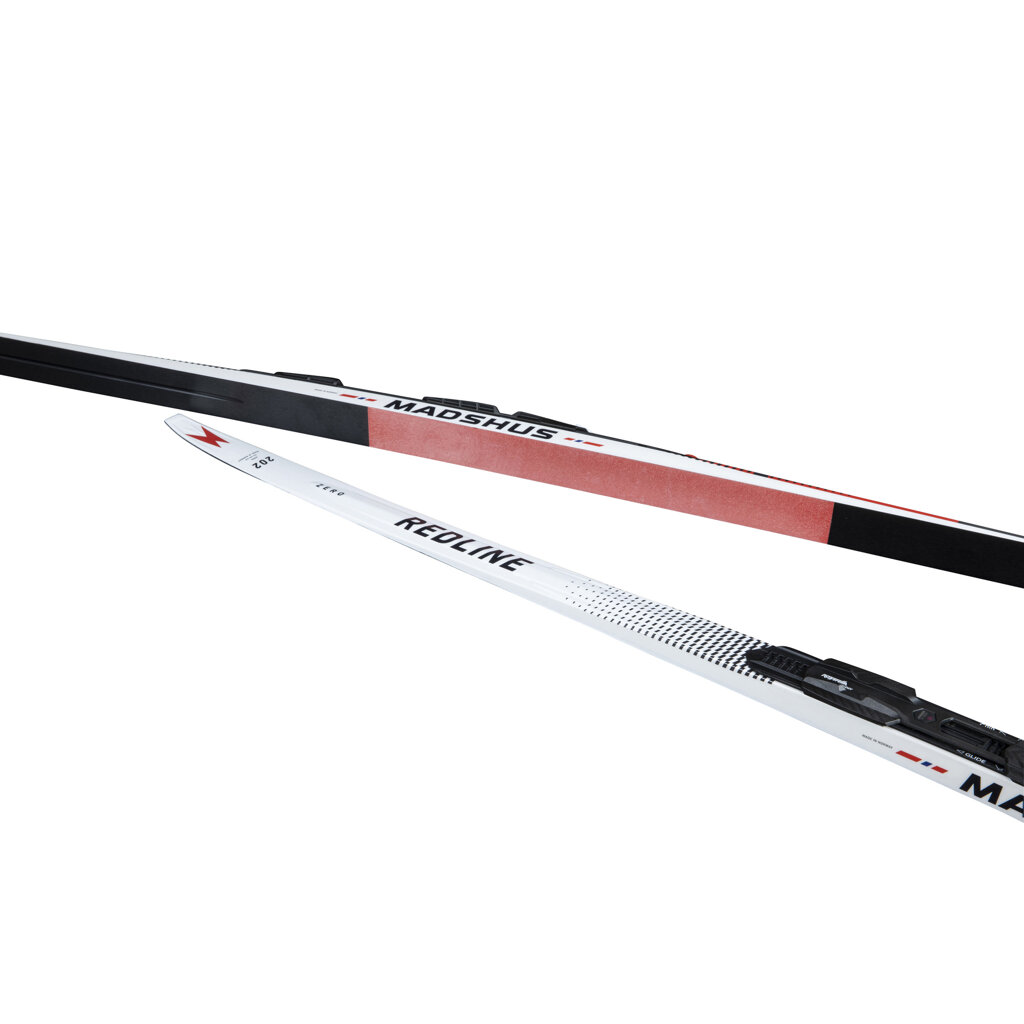Madshus Redline Zero jsou špičkové závodní lyže pro klasickou techniku, speciálně navržené pro náročné a měnící se sněhové podmínky kolem nuly stupňů Celsia. Klíčovou inovací je unikátní vložka ve skluznici v odrazové zóně, vyrobená ze směsi pryže a polyetylenu. Tato vložka, po zdrsnění smirkovým papírem, poskytuje lepší odraz než běžné tvrdé vosky a zároveň výrazně lepší skluz než klistr, což z nich dělá ideální volbu pro Světový pohár. Díky Triaxiální karbonové konstrukci a jádru PR100X nabízí Redline Zero vynikající přenos síly a odezvu. Skluznice P200 Nano s technologií Zero Base Insert a profil Classic Zero Camber zajišťují optimální vlastnosti v proměnlivých podmínkách.