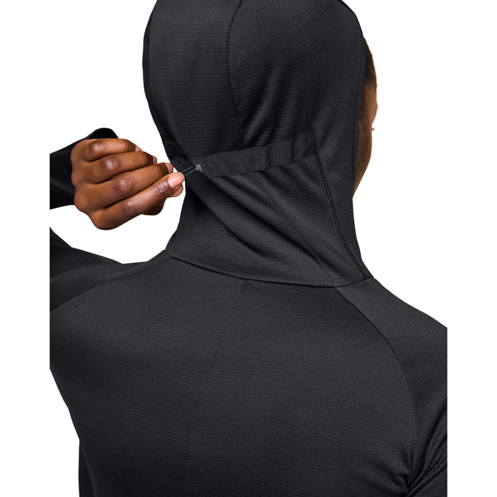 Představujeme Climate Zip Hoodie, ideální běžeckou mikinu pro chladné ranní tréninky, studené dny nebo dlouhé treky s proměnlivým počasím. Tato funkční mikina je vyrobena ze 100% recyklovaného polyesteru s vícedimenzionální strukturou povrchu, která zaručuje rychlé schnutí a vynikající odvod vlhkosti, zatímco elastické složení kapes (polyamid/elastan) zajišťuje neomezený pohyb. Mikina se dokonale přizpůsobí tvaru těla díky spirálovým záševkům na loktech a tvarovanému zadnímu švu. Když teplota poklesne, oceníte nastavitelnou kapuci s integrovanou vestavěnou kuklou/maskou na obličej, která poskytuje důležitou vrstvu tepla pro oblast krku a obličeje. Chytré detaily, jako je otvor na palec pro celkové zakrytí, a boční kapsa na zip pro nezbytnosti, zvyšují funkčnost. Reflexní detaily pak zajišťují bezpečnost při slabém osvětlení. Climate Zip Hoodie v chladu hřeje a v horku chladí, což z ní činí všestrannou vrstvu pro běh, turistiku nebo svižnou procházku.