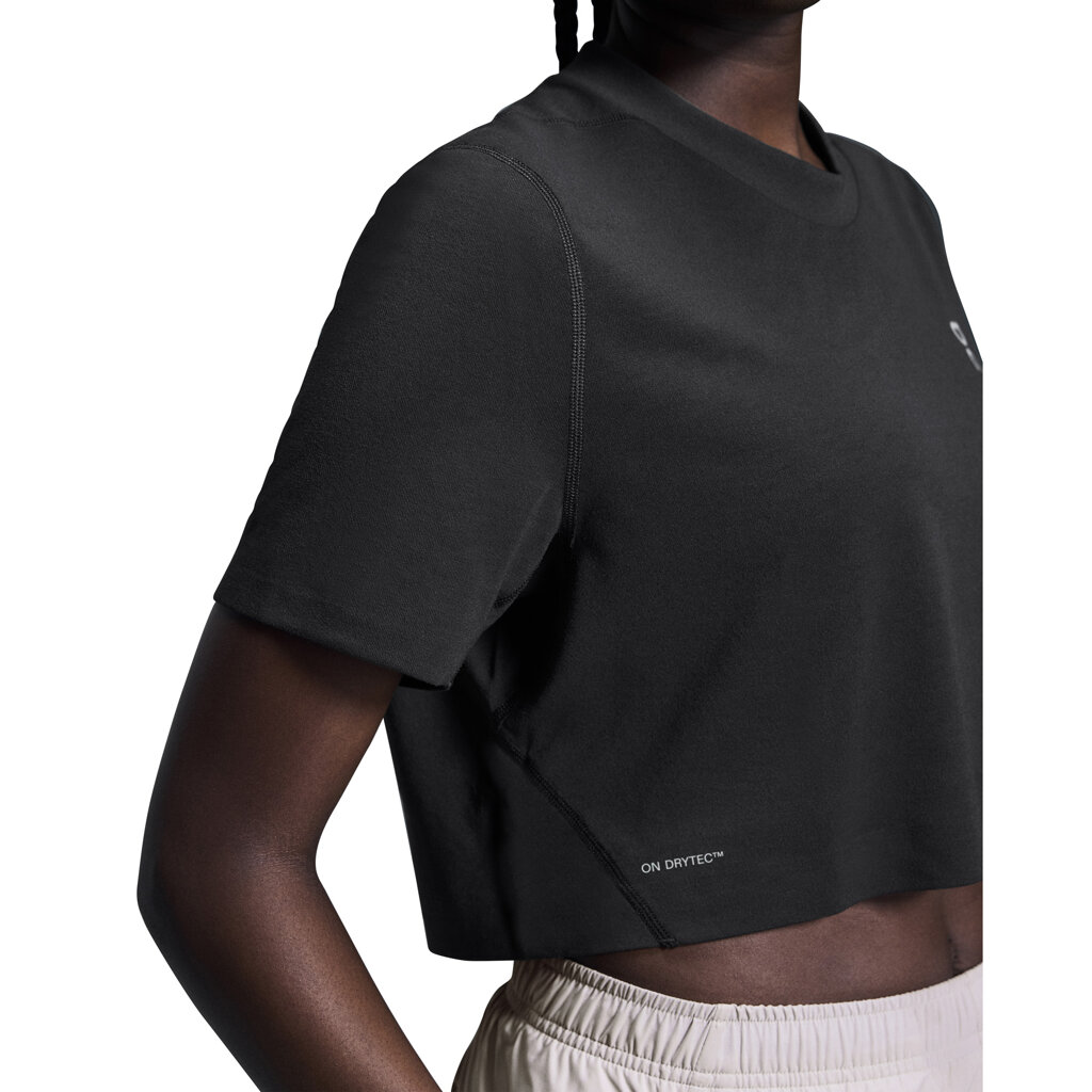 Tato tkanina je tak jemná, že se dá srovnat s bavlnou, a je tak měkká, že ji téměř necítíte. Je vyrobena z ultraprodyšné tkaniny On DryTec™, která také rychle schne a odvádí vlhkost. Byla vytvořena, aby vám zajistila pohodlí a příjemný chlad. Train-T Crop je navržen tak, aby kopíroval tvar vašeho těla, a má šikmé ramenní švy a vsadku v podpaží. Přizpůsobí se vašim pohybům, i když se akce rozjede. Train-T Crop je sice funkční, ale neztrácí nic ze svého stylu.
