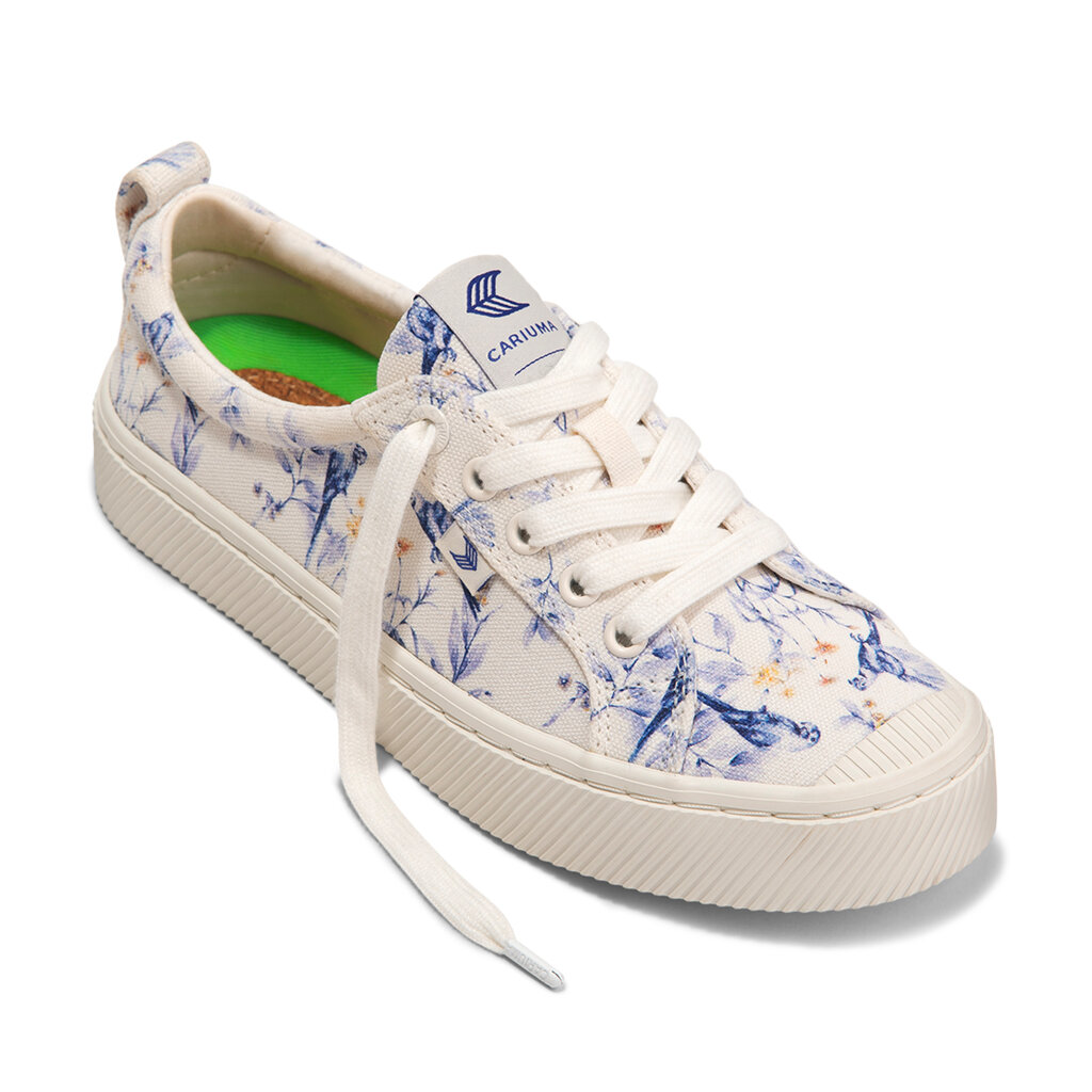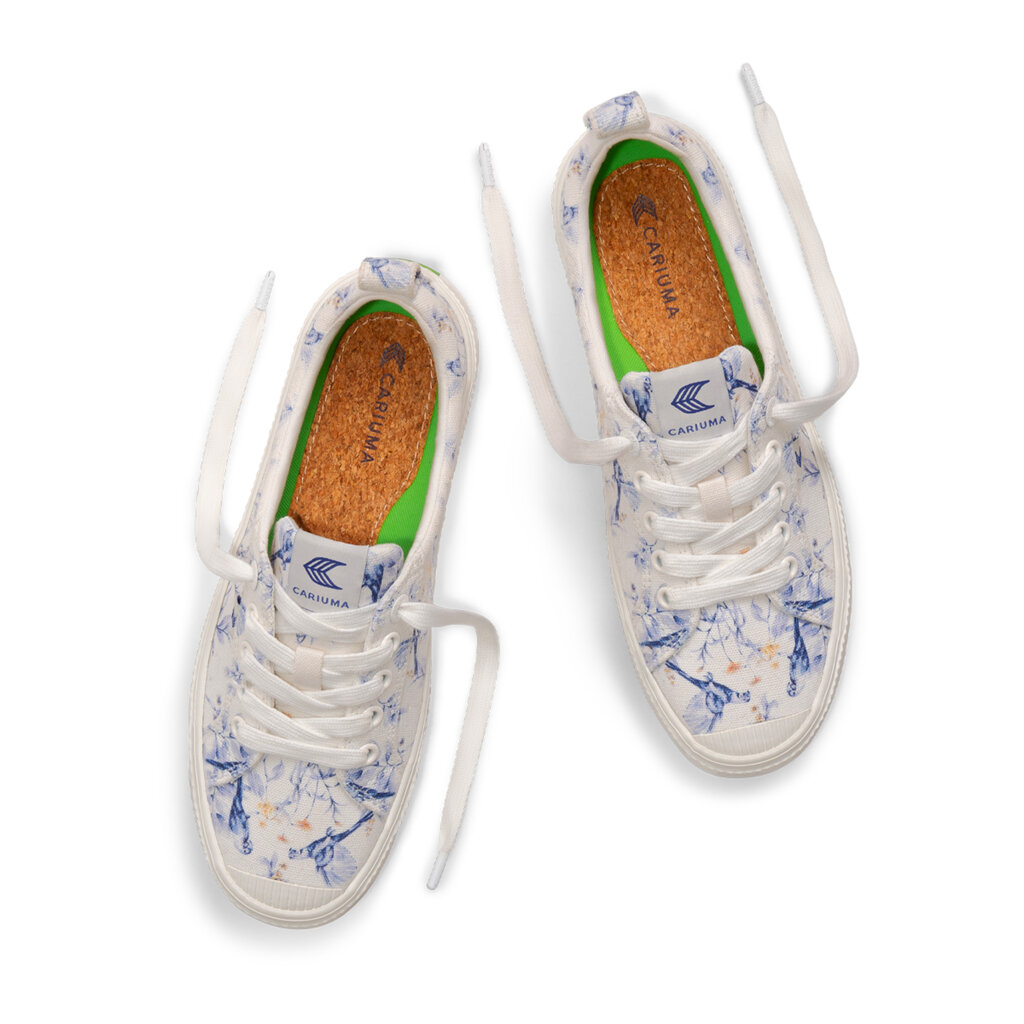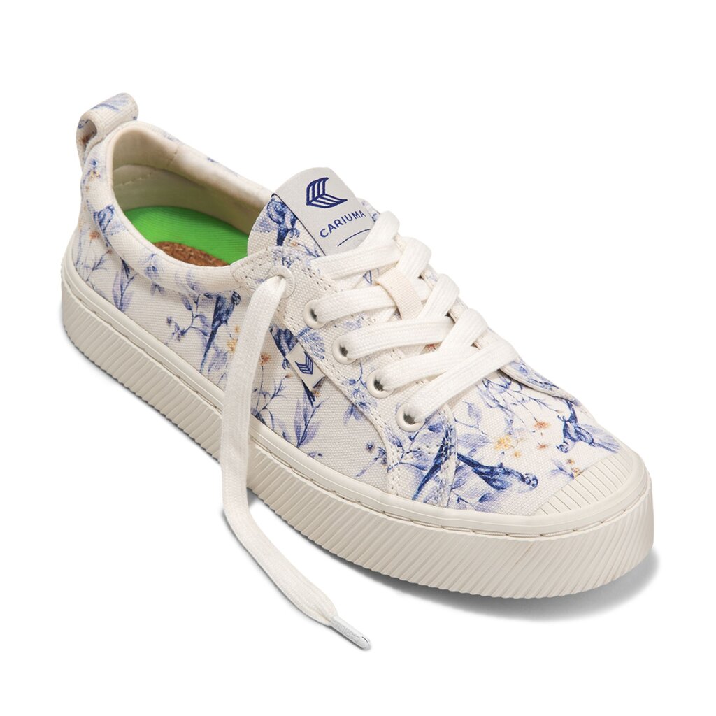 Dámské volnočasové boty Cariuma OCA Low White Spectrum Blue Parrot Print Canvas Sneaker