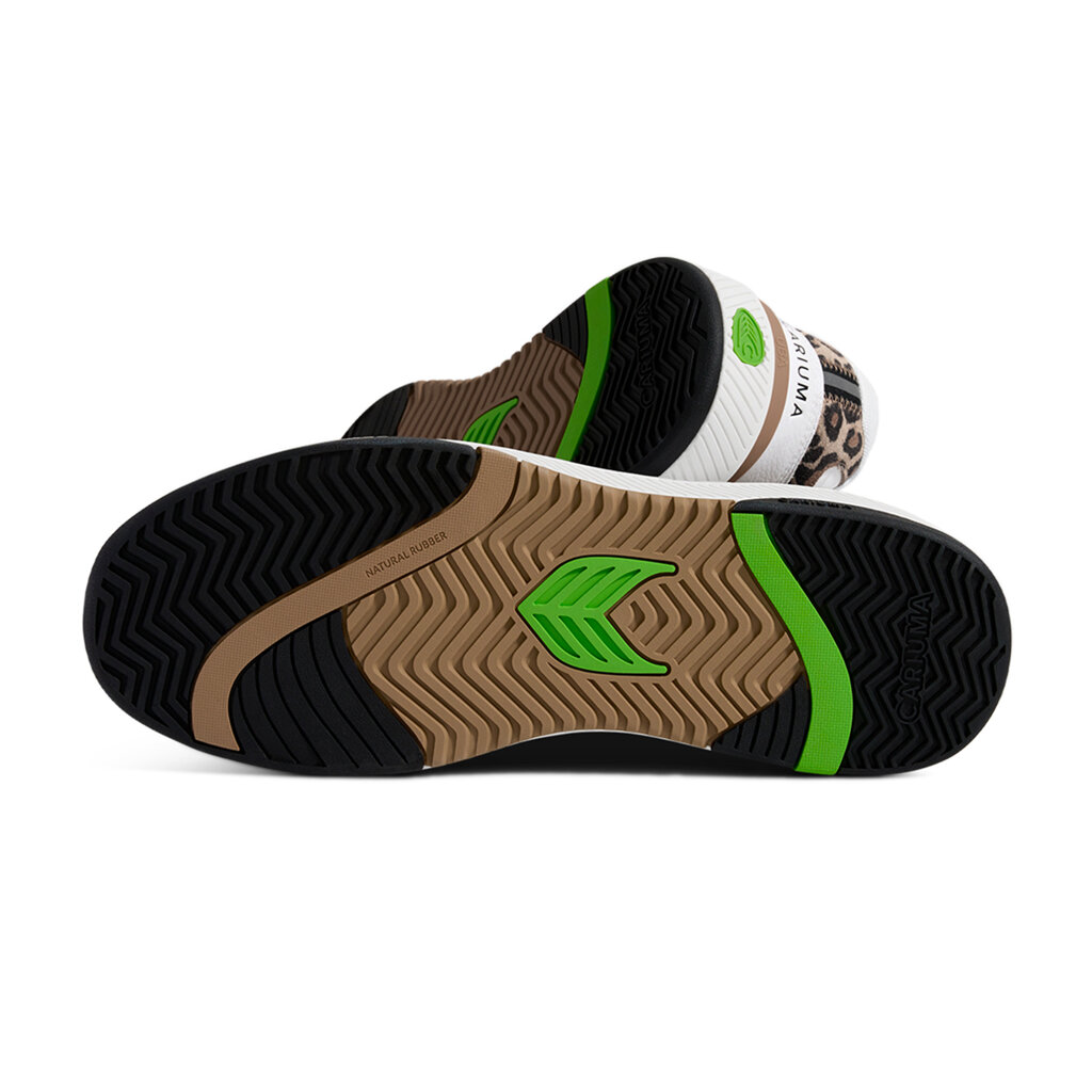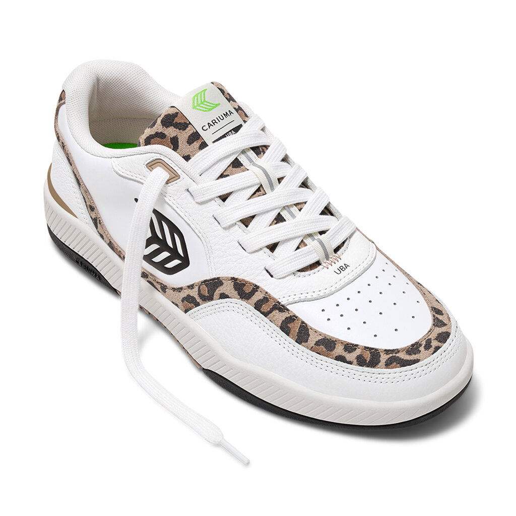 Dámské volnočasové boty Cariuma UBA White Leather Leopard Print Suede Black Logo Sneaker