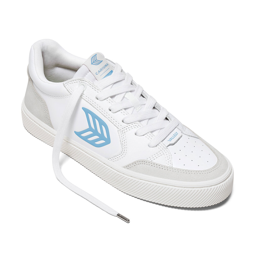 Dámské volnočasové boty Cariuma VALLELY White Leather Vintage White Suede Argentina Blue Logo Sneake
