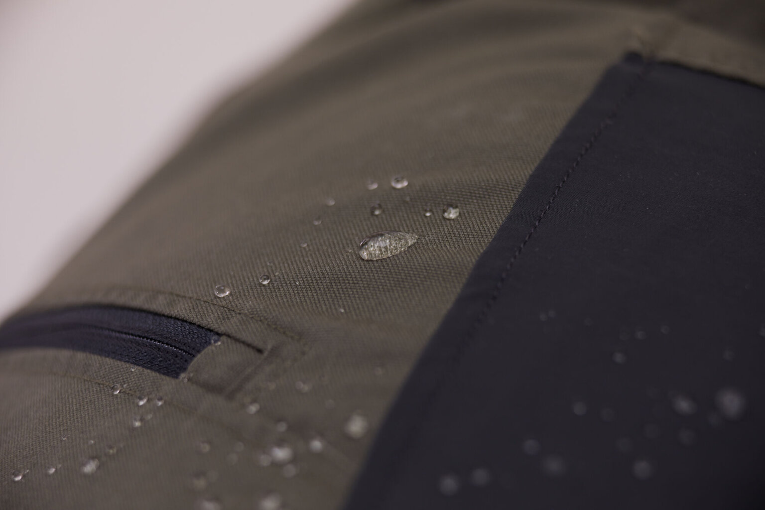 Lundhags Waterproof – 4-směrně strečový voděodolný 3L materiál v oblasti kolen a sedu.
