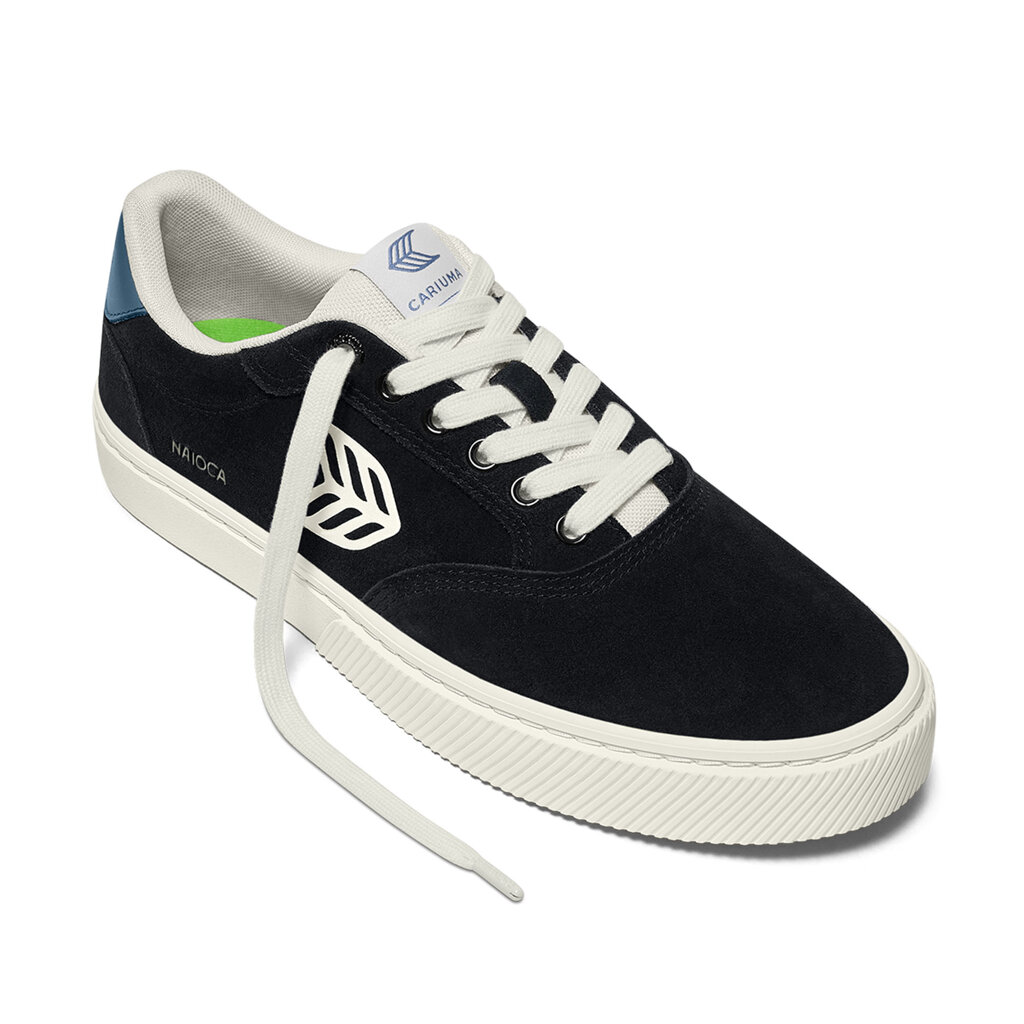 Pánské volnočasové boty Cariuma NAIOCA Black Suede Ivory Logo Washed Blue Sneaker