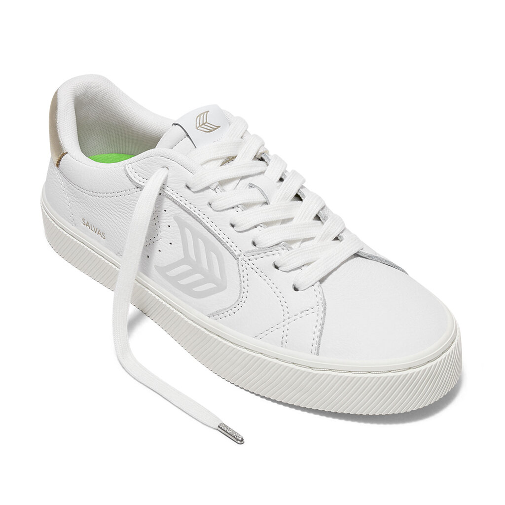 Pánské volnočasové boty Cariuma SALVAS White Premium Leather Ice Logo Metallic Gold Sneaker