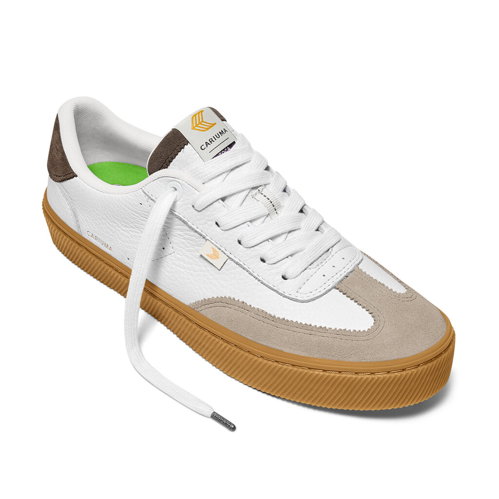 Pánské volnočasové boty Cariuma TOCA Gum White Premium Leather Plaza Taupe Suede Dark Khaki Sneaker