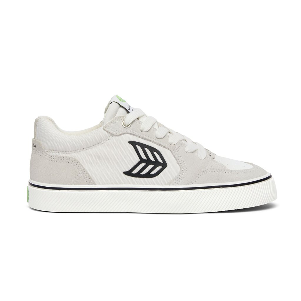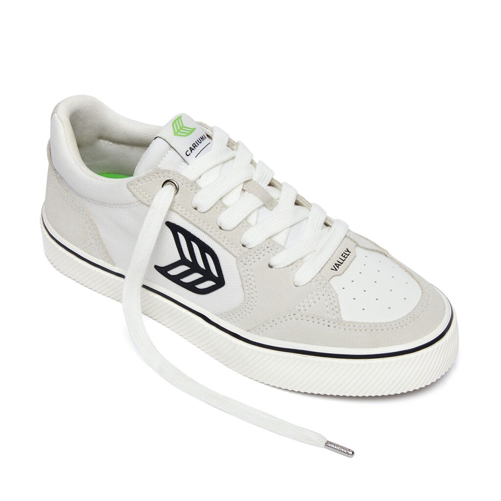 Pánské volnočasové boty Cariuma VALLELY PRO Vintage White Suede and Off-White Cordura Black Logo Sne