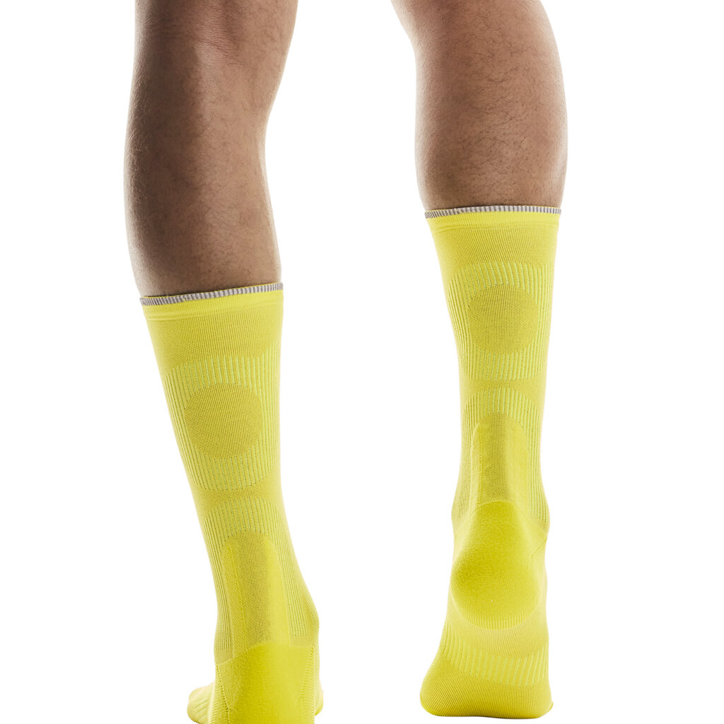 Běžecké ponožky, které nikdy nekloužou. Pohodlné ponožky na běh jsou vybaveny technickými ventilačními panely, které udržují teplotu nohy v dokonalé rovnováze. Chladí, když je horko, a hřejí dostatečně na to, aby ti nebyla zima v chladných dnech. Lehká pletená příze odvádí vlhkost od pokožky, zatímco ventilační zóny pomáhají předcházet hromadění potu a tvorbě puchýřů. Vzhledem k pohybu a nárazům nohy běžce jsme tyto ponožky zkonstruovali s vysoce odolným tlumením v místě chodidel a dalším polstrováním kolem achillovy šlachy. Běžecké ponožky s žebrovanou strukturou, cílenými kompresními zónami, zabudovanou podporou klenby a střihem bez rušivých elementů spolehlivě obepnou tvoje chodidlo a zajišťují bezpečné nošení při jakémkoliv pohybu.