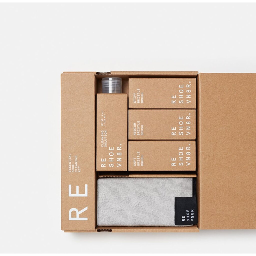 Součástí sady je také kompletní sada tří signaturních kartáčů Reshoevn8r, z nichž každý je navržen pro specifické materiály: měkký kartáč pro jemné povrchy jako semiš a nubuk, středně tvrdý kartáč pro běžné čištění plátna a kůže a tvrdý kartáč pro odolné podrážky a mezipodešve. Tím je zajištěno, že každá část vaší obuvi získá tu správnou péči.